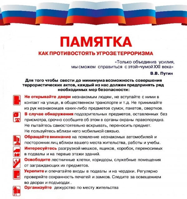 - Регулярное информирование родителей воспитанников памятками по профилактике терроризма.